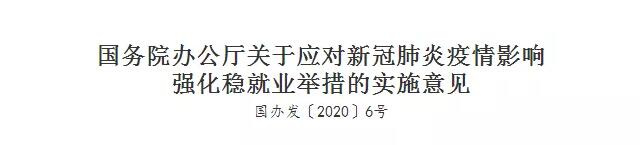 受新冠肺炎疫情影响,今年稳就业稳产业的任务十分艰巨繁重,近期,国务院办公厅印发《关于关于应对新冠肺炎疫情影响强化稳就业举措的实施意见》,强调全面强化稳就业举措。