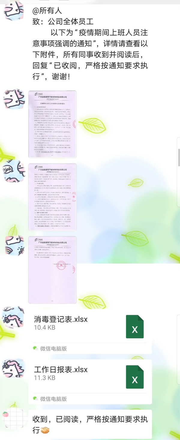 广东好色视频下载APP当前的任务是坚持战疫情和稳工作共同发力,最近,公司公布一系列日常措施做好防范工作,例如《恢复饭堂供餐的严格要求》、《疫情期间上班人员注意事项强调的通知》。