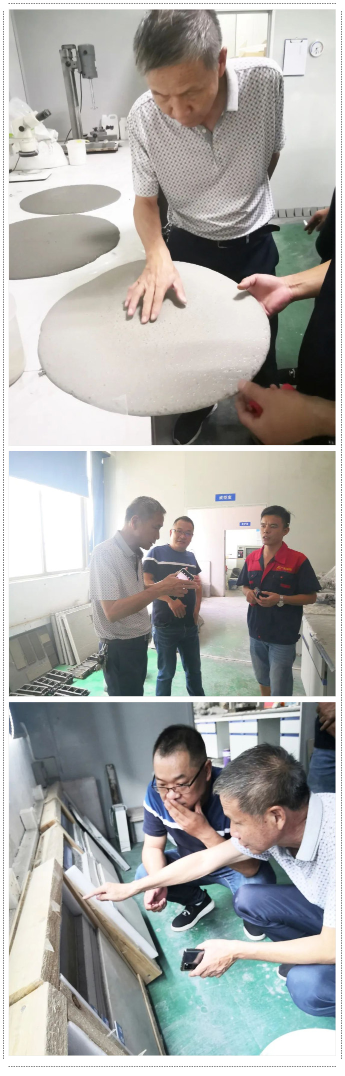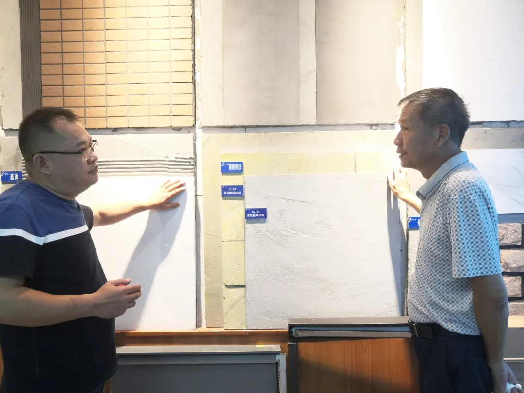 随后张总陪同邝教授先后参观了干粉砂浆生产车间、技术研发试验室中心、样板展示区并详细了解了产品原材料、实验设备仪器、生产过程、检测流程、工作团队等,同时给出了专业的指导性意见。
